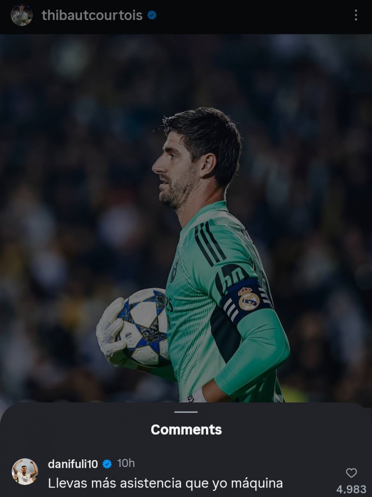 Trong chiến thắng 5-0 trước Almaty Keilat ở Champions League, thủ môn Real Madrid Courtois đã hỗ trợ. Sau trò chơi, anh ấy đã đăng hình ảnh lên phương tiện truyền thông xã hội để chào mừng chiến thắng của đội.